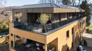 Koblenz_Bendorf_Mosel_Mehrfamilienhaeuser_Wohnkomplex_Drohenshot_seitenaufnahme