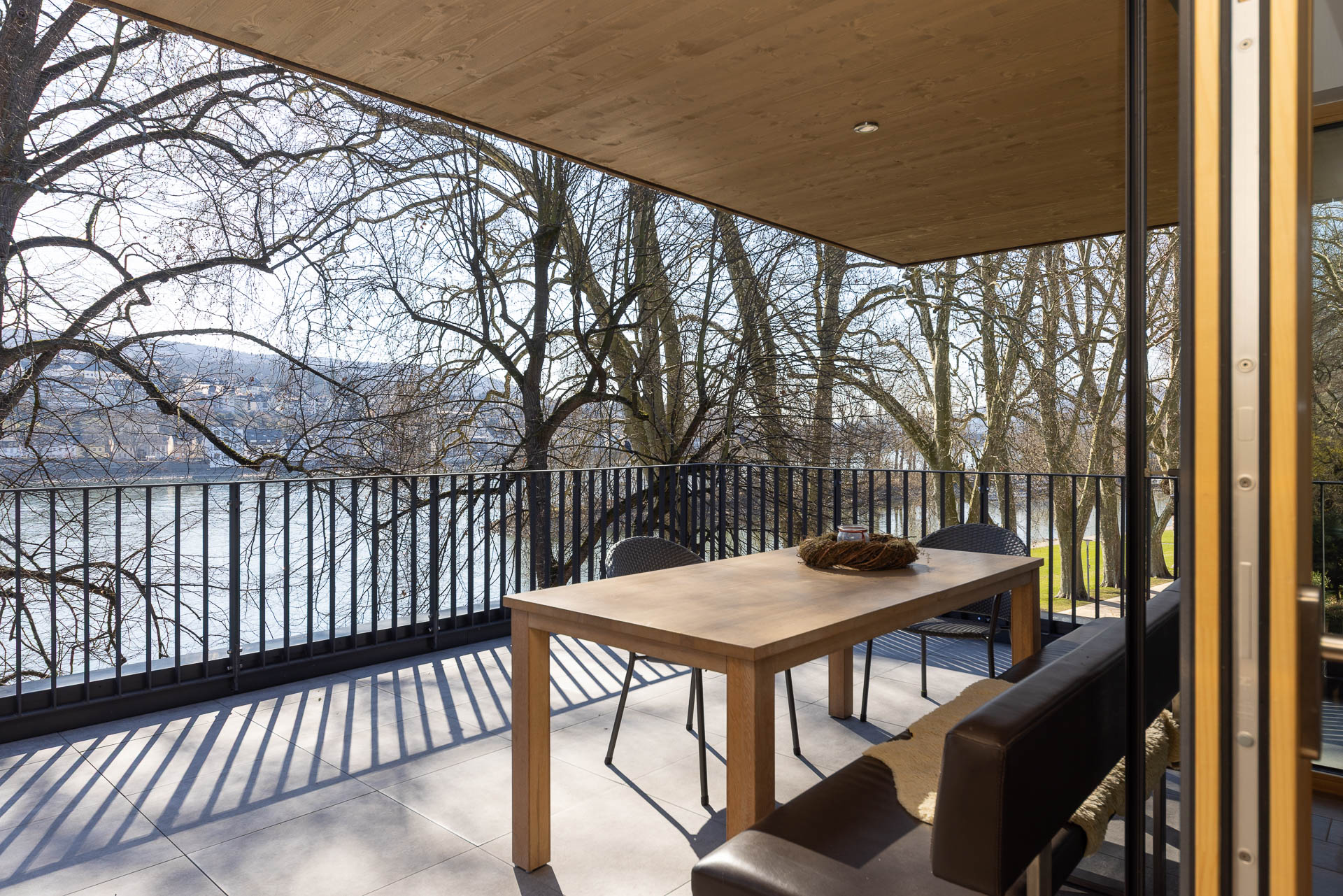 Archtitekturfotografie eines modernen Balkons mit Ausblick auf den Mittelrhein.