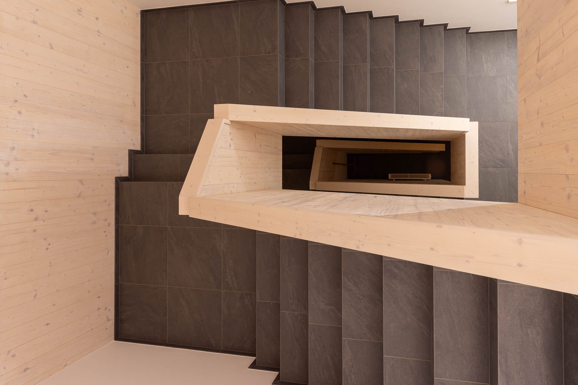 Das Treppenhaus eines Einfamilienhauses in der Vogelperspektive.